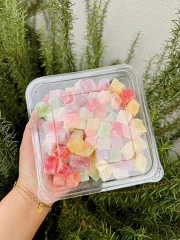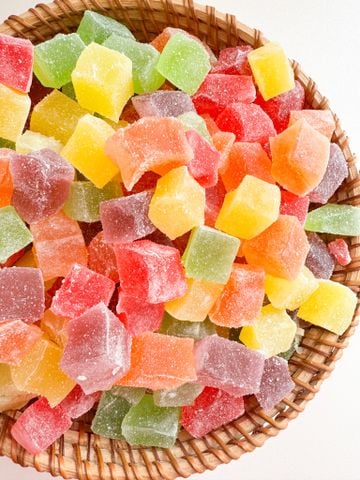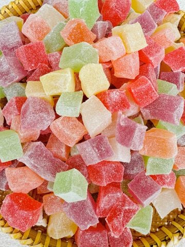 Từng viên kẹo dẻo vuông nhỏ xinh, được phủ nhẹ lớp bột đường bên ngoài