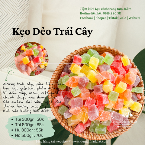 kẹo dẻo phủ đường, kẹo dẻo trái cây mềm,