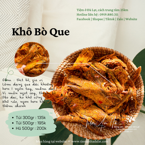khô bò que cay, khô bò dẻo cay ngọt, khô bò dạng que mềm, món ăn vặt từ thịt bò, khô bò hộp 500g, bò sấy cay the ngọt, đặc sản bò khô handmade, khô bò không chất bảo quản