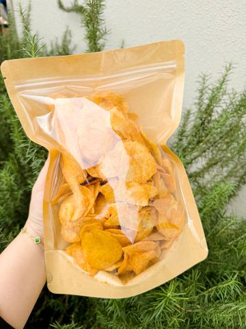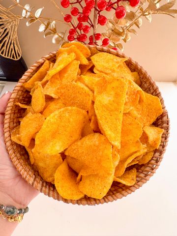 Từng lát khoai tây Đà Lạt mỏng vừa, sấy giòn phủ trứng muối & phô mai, tạo nên hương vị mặn nhẹ – béo bùi – hậu ngọt thơm, giòn xốp không bị cứng – ăn vặt không ngán!