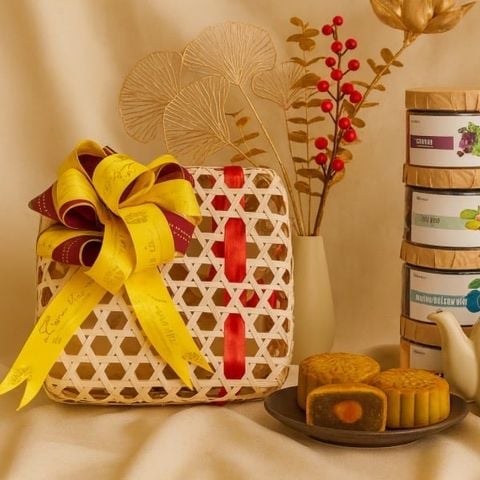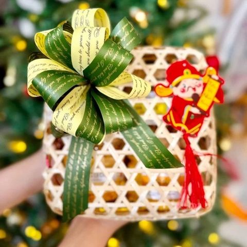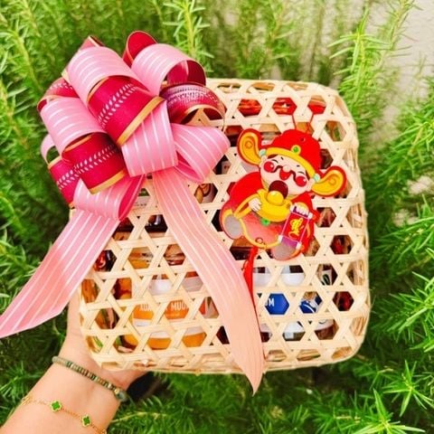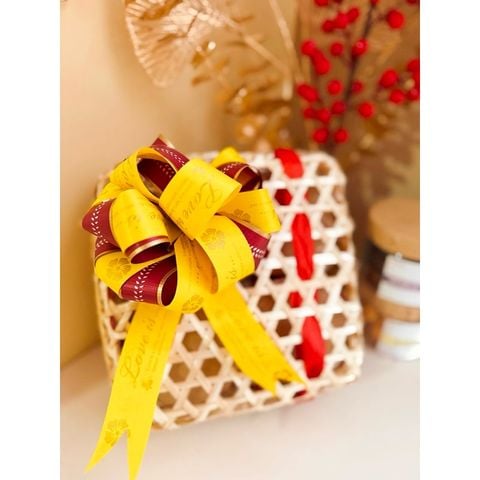 Kiểu dáng đơn giản nhưng rất ấn tượng với phần mây tre phối với ruy băng đỏ như 1 món quà thân tình ấm áp