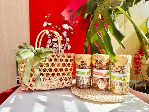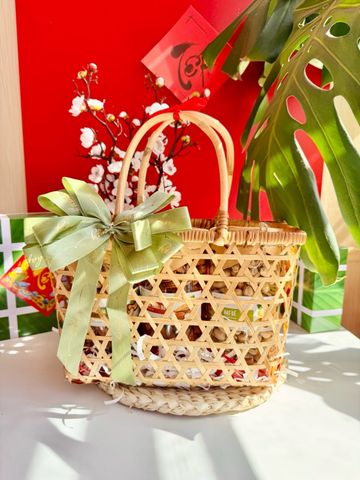 Quà Tết 2026 - Giỏ mây quai xách size nhỏ 3 hũ cao