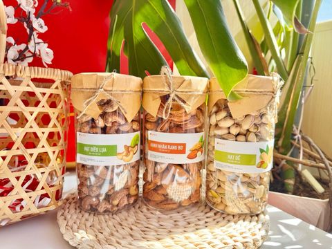 5 món : Hồng 500g - Hạt dẻ 500 - Hạt điều 500 - Thơm ớt 500 - Trà Atiso 20