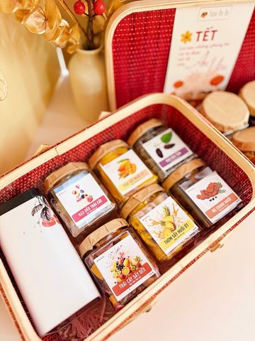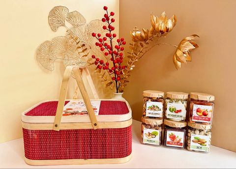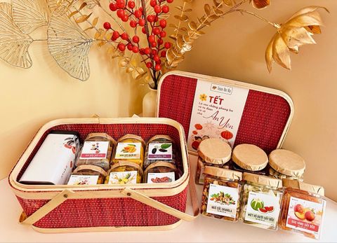 Quà Tết 2026 - Giỏ Quà Mây HCN Đỏ 6-7 món
