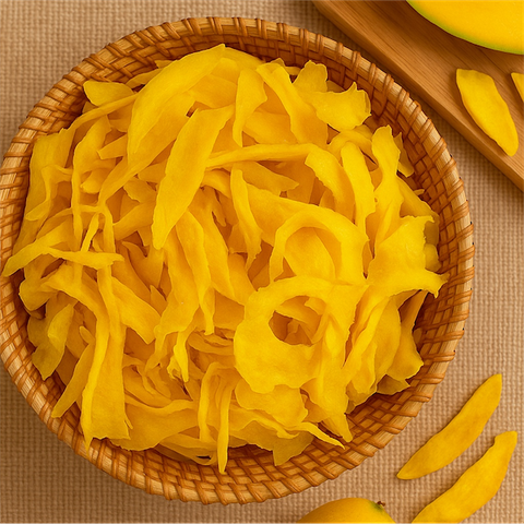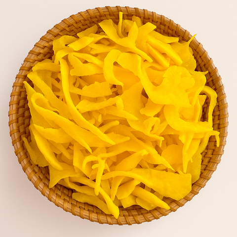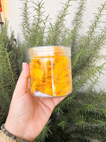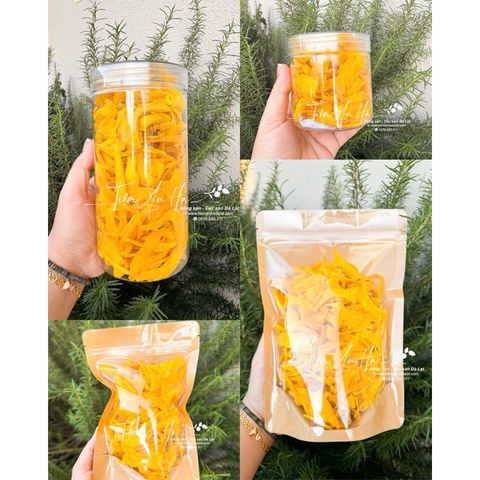 • Nguồn nguyên liệu: Phần rìa miếng xoài sau khi tỉa để làm xoài xếp hoa